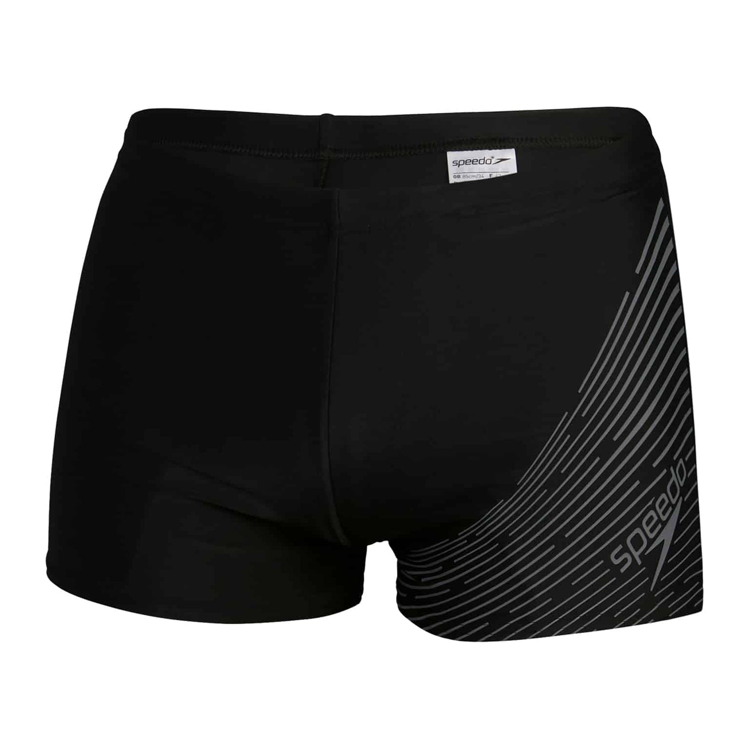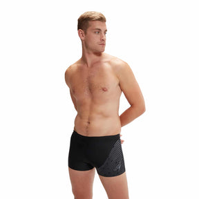 Mit der asymmetrischen Druckgestaltung der Speedo Badeboxer Medley Logo Schwarz/Grau hebst du dich im Wasser von der Masse ab. Du fühlst dich nicht nur wohl, sondern siehst auch gut aus, während du deine Runden ziehst.