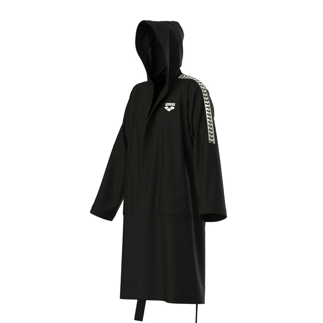De Arena Badjas Team Stripe Zwart/Wit brengt een vleugje nostalgie met zich mee. Met zijn retro logo stripes op de schouders voel je je meteen terug in de jaren '70. Deze badjas is niet alleen stijlvol, maar ook perfect voor de moderne zwemmer die van comfort houdt.