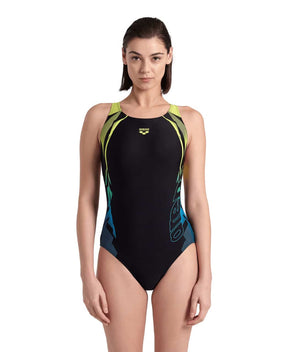 Arena W Gleam Swimsuit V Back One Piece black-soft Green - Ervaar totaal comfort in het water!